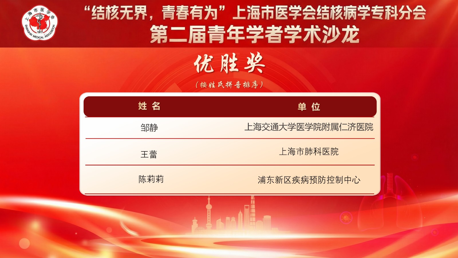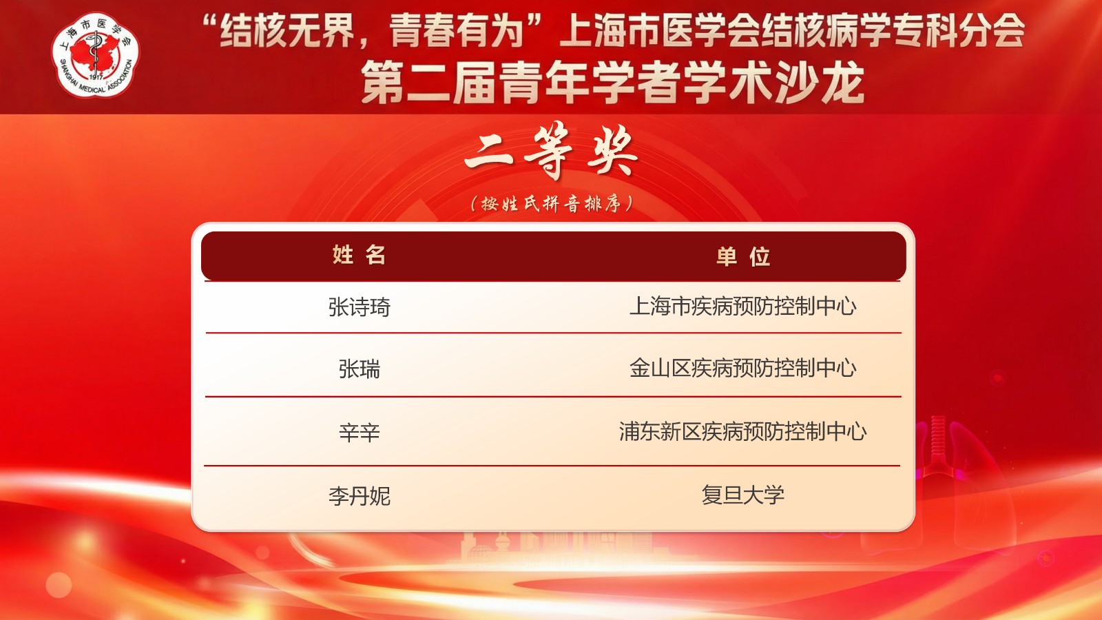 冬日暖阳映照学术热忱。2025年12月13日,由上海市医学会、上海市医学会结核病学专科分会主办的“结核无界,青春有为”——上海市医学会结核病学专科分会第二届青年学者学术沙龙在上海光大国际大酒店成功举办。本次沙龙聚焦结核病防控前沿,为青年学者搭建了深度交流与风采展示的高水平平台。