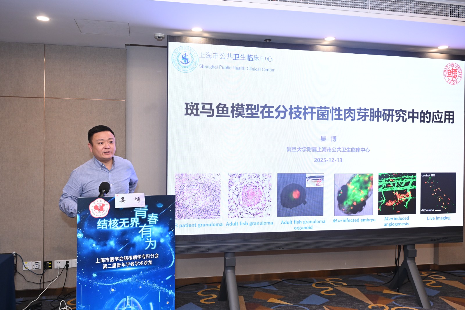 上海市公共卫生临床中心的晏博副研究员介绍了斑马鱼模型在分歧杆菌性肉芽肿研究中的应用。