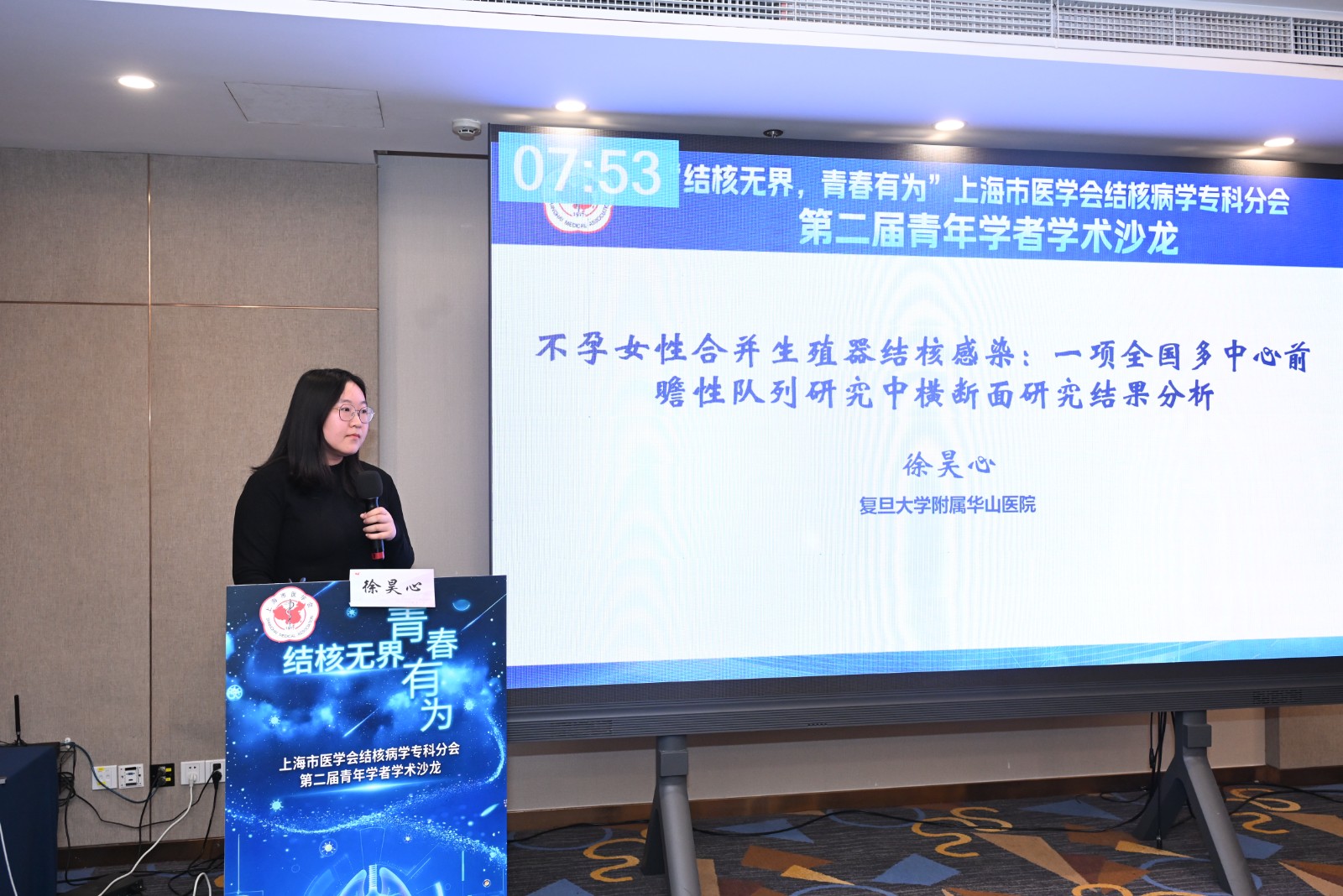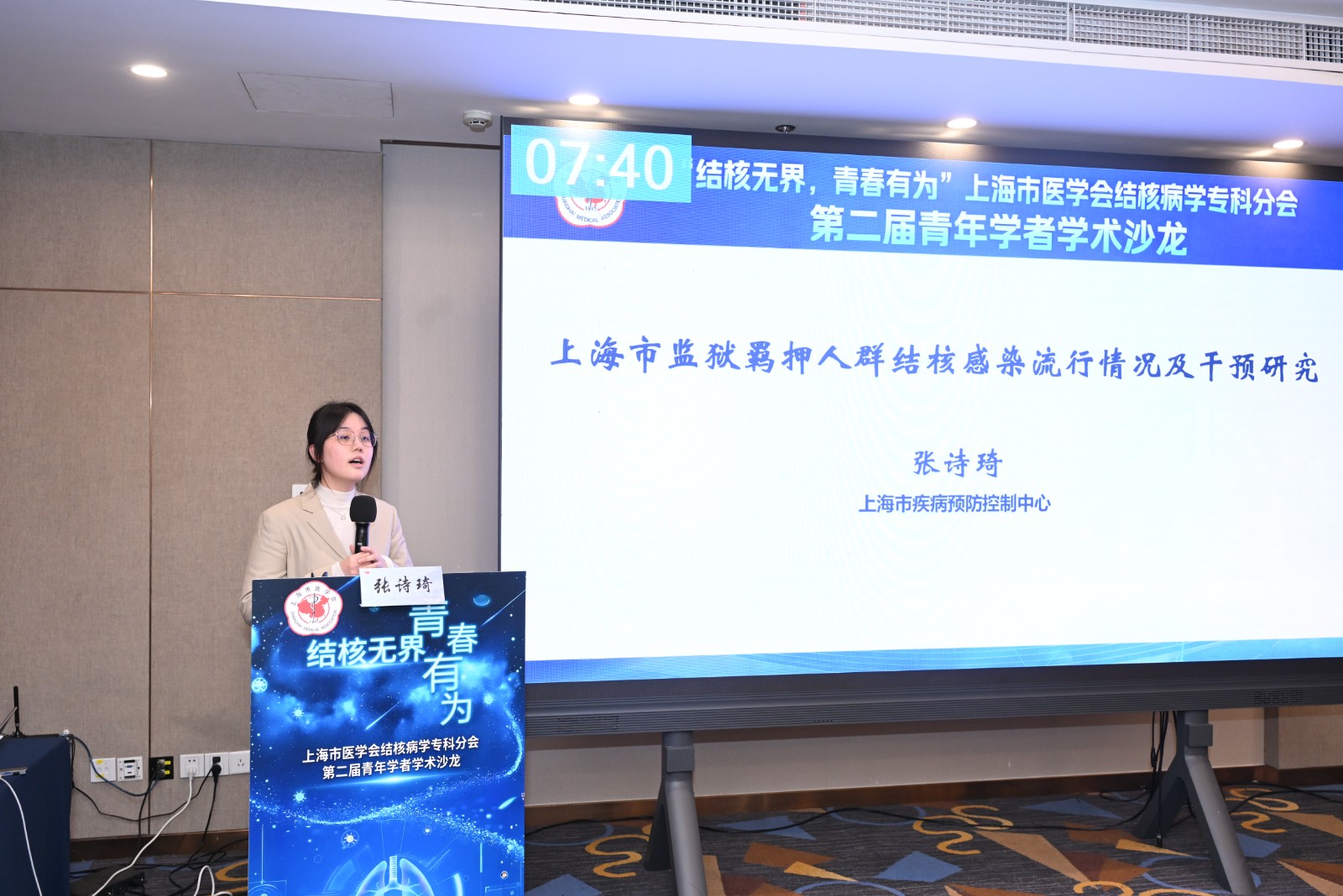 随后,备受瞩目的青年学者学术报告大赛将沙龙推向高潮。本届大赛吸引了广泛关注,共收到众多高质量投稿,经初选,15位优秀青年学者入围现场决赛。他们的报告涵盖基础研究、临床转化、预防控制等多个领域,充分展现了上海结核病防治青年一代扎实的功底、活跃的思维与创新的锐气。评审专家从学术创新性、研究严谨性、现场表现力等多维度进行综合考评。
