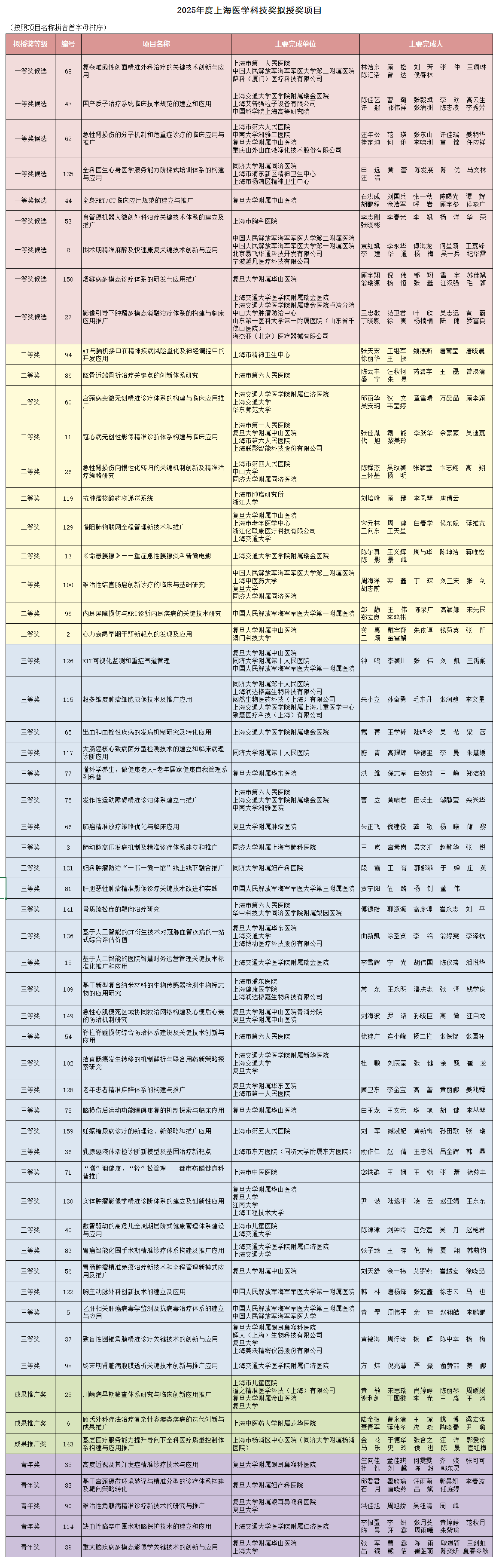 根据《上海医学科技奖管理办法》的规定,上海市医学会对2025年度上海医学科技奖推荐项目在形式审查的基础上组织专家进行初审、复审,并对上海医学科技奖成果推广奖、青年奖推荐项目组织专家评审。现将通过评审的58个拟授奖项目在上海市医学会网站予以公示(见附件),其中上海医学科技奖拟授奖项目50个,上海医学科技奖成果推广奖拟授奖项目3个,上海医学科技奖青年奖拟授奖项目5个。公示期为30天。
